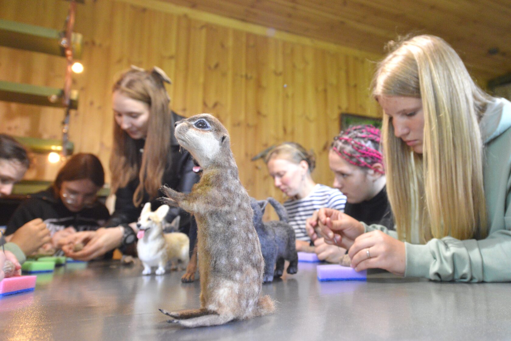 Игорь Шпиленок провёл ребятам большую экскурсию по резервной колонии, рассказал историю вида: как крапчатые суслики стали из многочисленного вида редкими и краснокнижными и почему теперь мы, люди, за них в ответе. Дети привезли с собой яблоки и семечки, гостинцы для сусликов, и стали волонтёрами: разнесли подкормку по всем норам колонии, которых уже около 400! Мастер по сухому валянию Любовь Шатобо провела для ребят мастер-класс: суслики делали сусликов. Получились у всех с разной степенью похожести на оригинал.